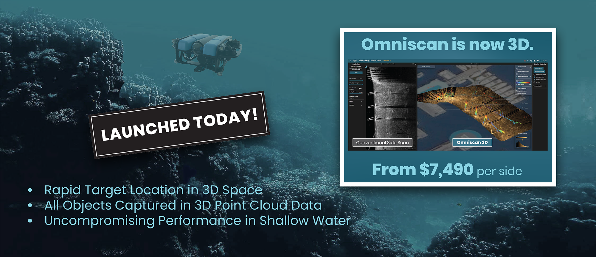 Introducing the Cerulean Sonar Tracker 650. Optimized for minimum cost ($2,990) with performance ideally suited for the everyday operation of most small ROVs.
